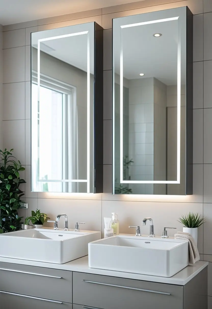2) Mirrored medicine cabinets for dual functionality