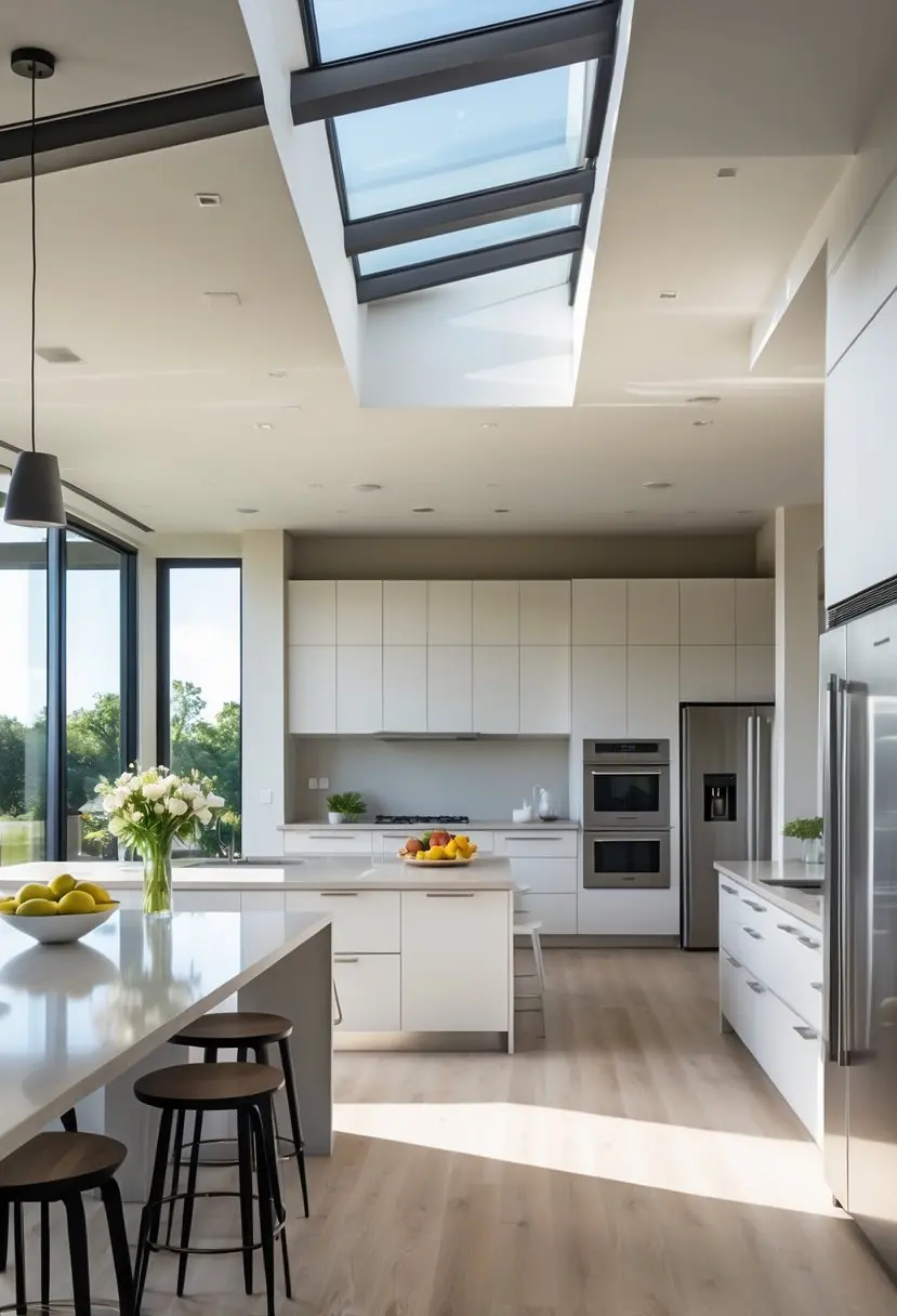 Lighting defines how a kitchen feels and functions. Maximizing natural light helps make the space inviting. Larger windows, skylights, or glass doors increase daylight without adding heat.