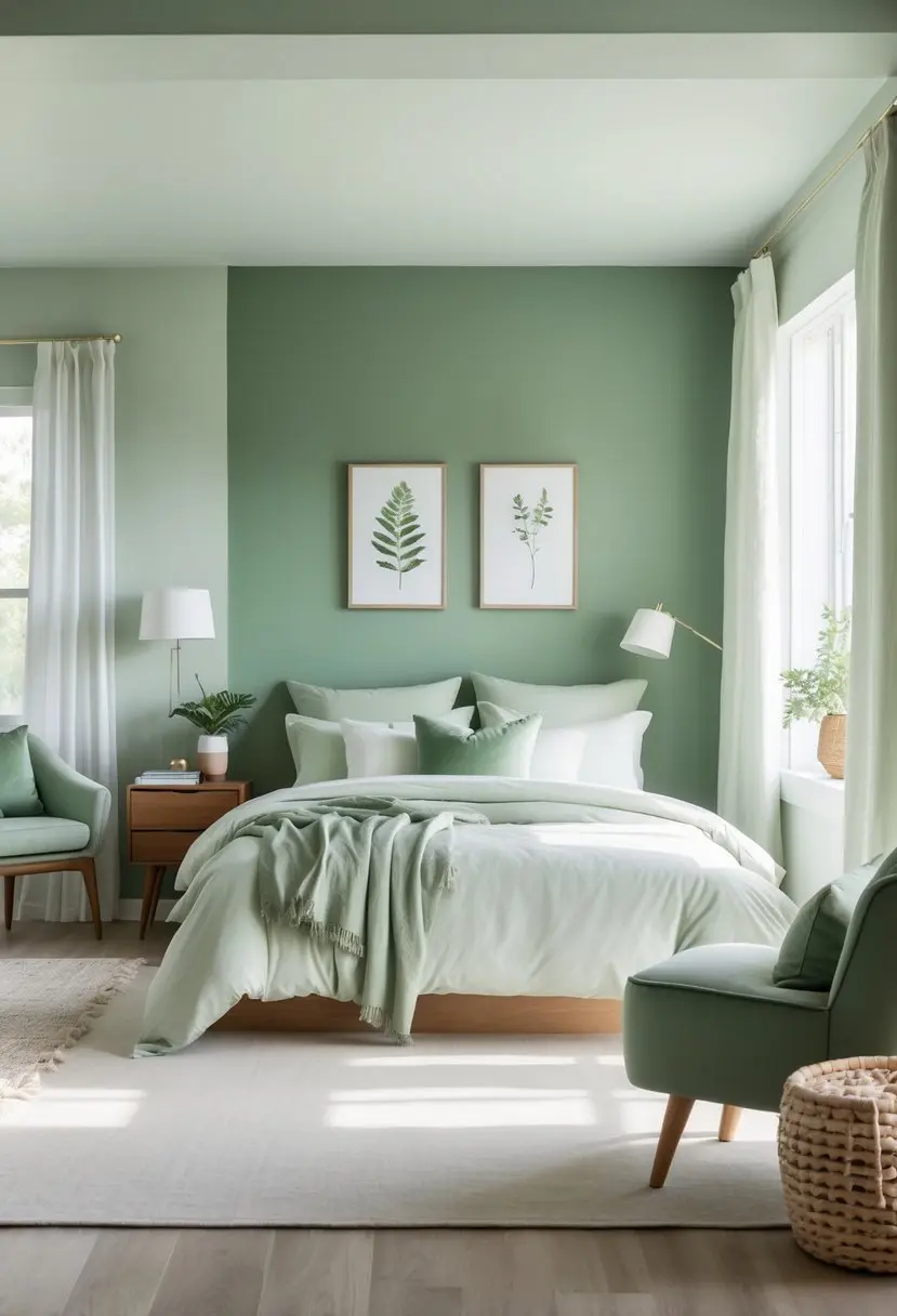 What color combinations work well with sage green in a bedroom?