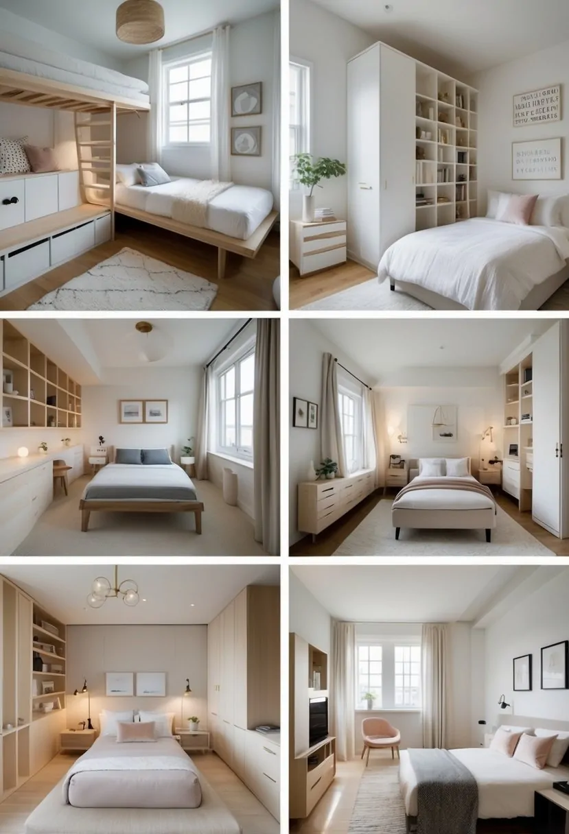 They can use multifunctional furniture, such as beds with built-in storage drawers. Loft beds are a good option to free up floor space underneath for a desk or seating area.
